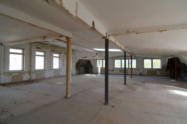 Einen besonderen Charme hat unser Dachgeschoss mit den großen Oberlichtern. Hier saßen bis in die 1930er Jahre die Ingenieure mit Ihren Bauplänen. |