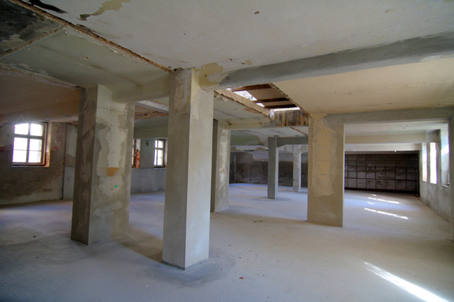 Stellplätze sind auf dem Hof vorhanden. Ein Gärtchen mit Blick auf unsere historische Fabrik…. |